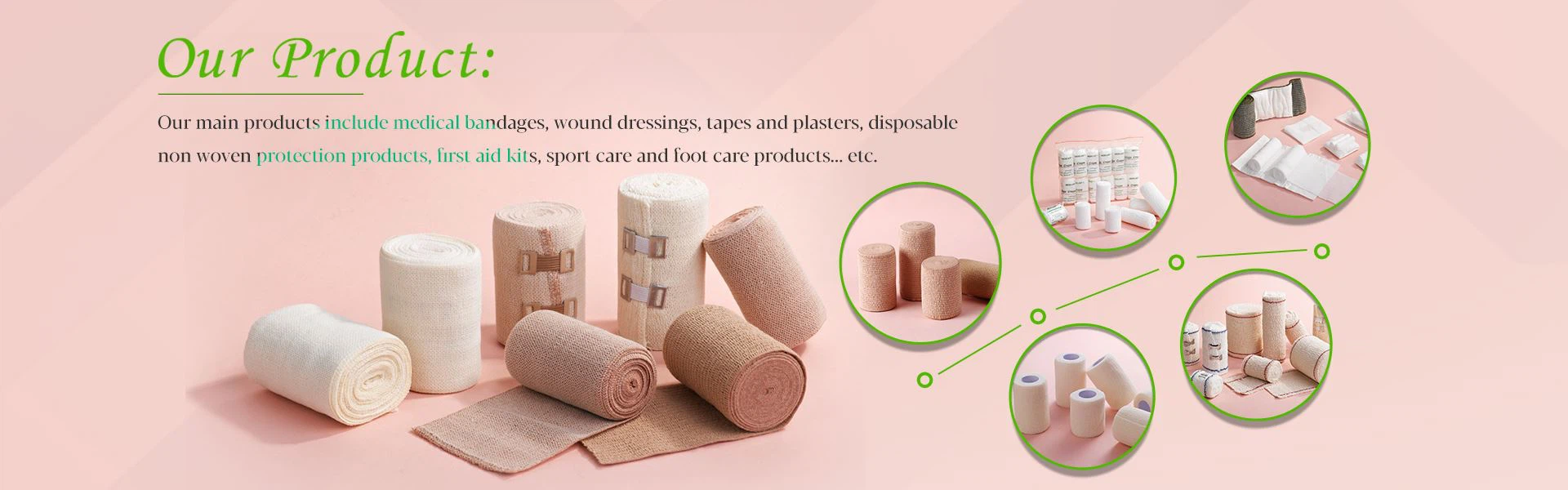 About Us >- Unsere Hauptprodukte sind medizinische Bandagen, Wundverbände, Bänder und Pflaster, Erste -Hilfe -Kits, Sportpflege- und Fußpflegeprodukte ... usw.